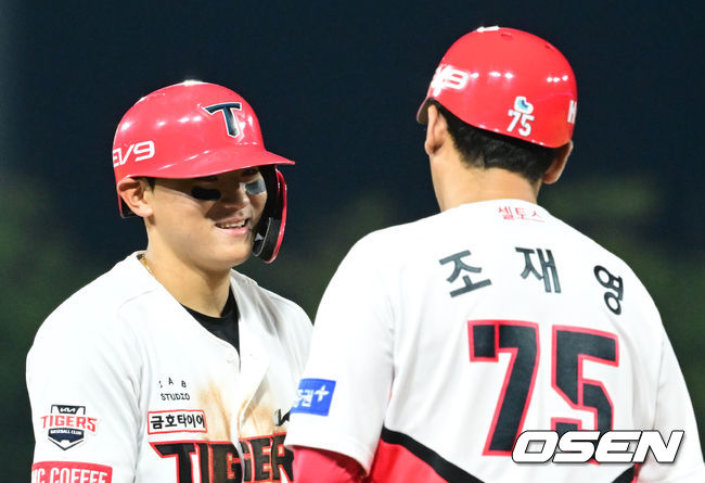 ![[OSEN=광주, 김성락 기자] 26일 오후 광주 KIA챔피언스필드에서 2023 신한은행 SOL KBO리그 KIA 타이거즈와 한화 이글스의 경기가 진행됐다.8회말 KIA 선두타자 김도영이 3루타를 날린 뒤 조재영 코치와 이야기를 나누고 있다. 2023.08.26 / ksl0919@osen.co.kr](http://file.osen.co.kr/article/2023/08/27/202308270904779137_64ea9783b0d01.jpg)