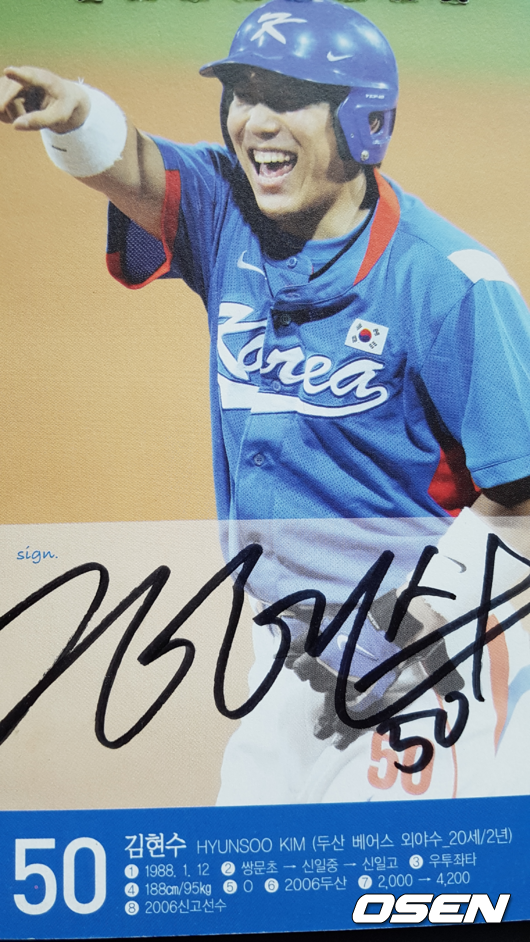 (사진) 이대호와 김현수의 2008년 베이징 올림픽 때 모습과 사인(KBO의 베이징올림픽 대표팀 사인 첩에서)
