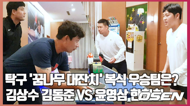 저녁시간 김상수 김동준이 윤영삼 한현희와 커피 내기 탁구 경기로 즐거운 시간을 보냈다.