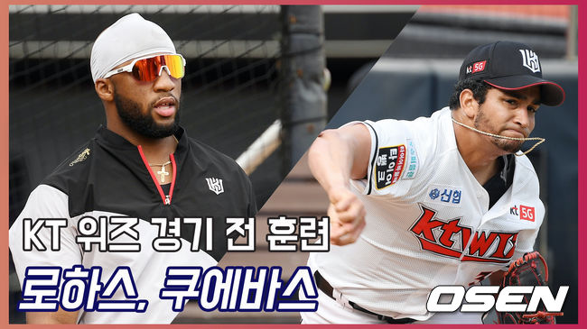 KT 위즈 쿠에바스와 로하스가 훈련을 하고 있다. /rumi@osen.co.kr