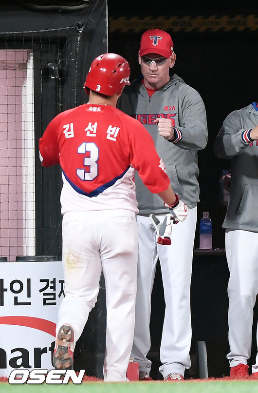 [사진김선빈,'윌리엄스 감독님 득점 올렸어요' 2020.05.26 본문 [OSEN=수원, 조은정 기자]26일 오후 경기도 수원 KT위즈파크에서 ‘2020 신한은행 SOL KBO 리그’ KT 위즈와 KIA 타이거즈의 경기가 열렸다.7회초 무사 1,3루에서 KIA 최형우의 달아나는 우전 1타점 적시타 때 홈을 밟은 김선빈이 더그아웃에서 윌리엄스 감독과 주먹을 치고 있다. /cej@osen.co.kr 이전글 다음글 수정 삭제 목록