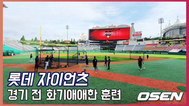 경기 시작을 앞두고 롯데 선수들이 그라운드 위에서 화기애애한 훈련을 하고 있다. / rumi@osen.co.kr